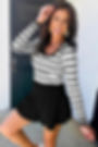Black white Scalloped Trim U Neck Striped Ribbed Slim Sweater