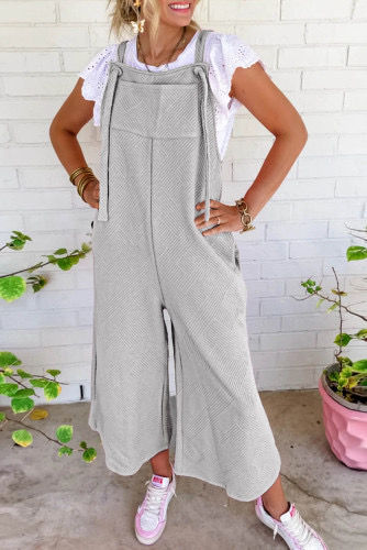Light Grey Textured Self-Tie Strap Wide-Leg Overalls